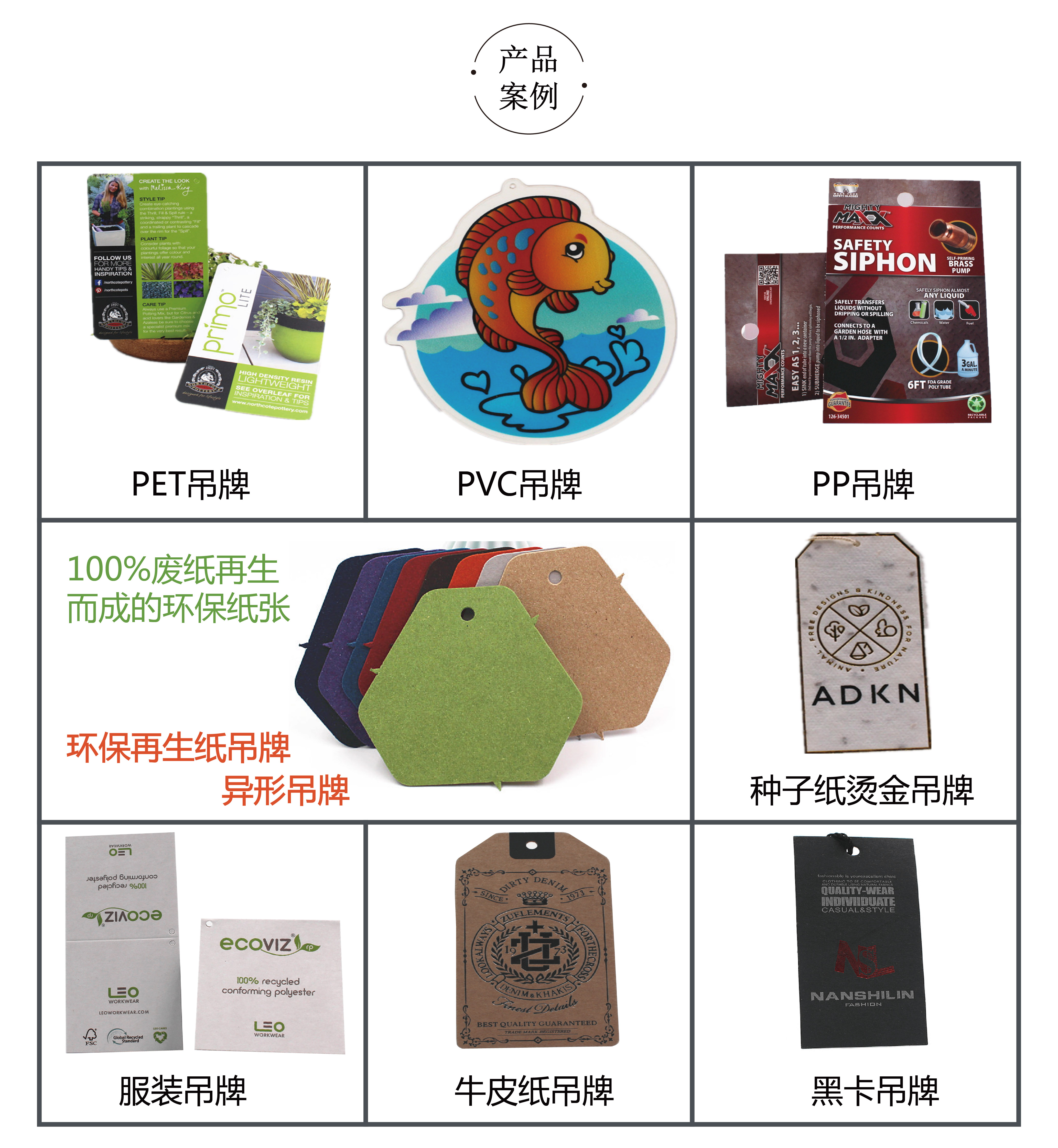 材質(zhì)分類:PP吊牌、PVC吊牌、PET吊牌等(乳白、透明、磨沙、斜紋等)